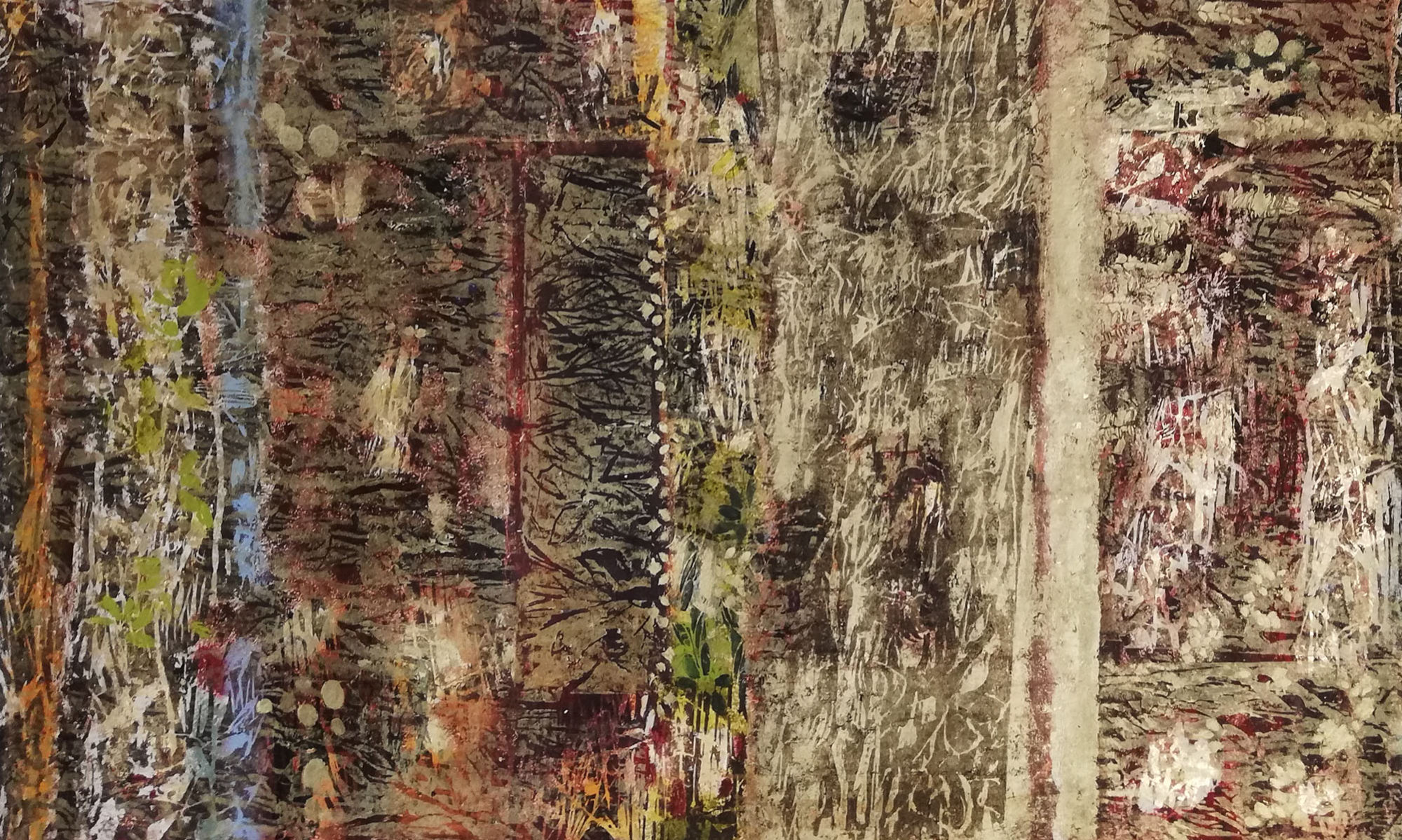 … Christa Mayrhofer schafft aus dem Druck durch ein Verdecken und Öffnen organisch durchpulste Bildteppiche. Eine Vervielfältigungsmöglichkeit schließt ihre Art des Umgangs mit den Materialien aus. Insofern schafft sie auf ihren Quadraten und gelängten Hochformaten in wechselnden Dimensionen stets etwas Neues, das sich in Bildkadern einander zuordnet. …In gewisser Hinsicht schlägt, schneidet die Künstlerin Lichtungen, Schneisen, Durchlässe in das Farben- und Formdickicht aus dunklen und hellen, sich wie Farbmoos ausbreitenden Strukturen. Mittels drucktechnischer Manipulation und durch das Reagieren auf Feuchtigkeit, Walzendruck oder die Konsistenz des Papiers läßt sie fein bewegte Mutationen analog zum Atmenden ihrer Betrachtungsfelder entstehen.